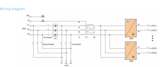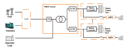 Funkcja System wykorzystuje modułowe jednostki inwerterowe w konfiguracji równoległej, gdzie wejście DC każdego modułu inwertera odpowiada dedykowanej szafie bateryjnej, umożliwiając zarządzanie poszczególnymi klastrami w celu wyeliminowania prądów krążących pomiędzy nimi ciągi baterii. Moduły zasilania AC/DC umożliwiają elastyczne wdrażanie zarówno pod względem ilości, jak i moc znamionowa, o maksymalnej mocy modułów 60 kW w połączeniu równoległym 5 jednostek konfiguracja. Wyjście prądu przemiennego z modułów mocy dostarczane jest przez transformator izolowany stopień wyjściowy, dostarczający moc do obciążenia z dużą rezystancją obecny szok. Hybrydowy ESS wykorzystuje integrację fotowoltaiczną ze sprzężeniem prądu stałego, osiągając wysoką wydajność efektywność konwersji energii i zoptymalizowana pod kątem scenariuszy poza siecią z fotowoltaiką moce wytwórcze przekraczające zapotrzebowanie obciążenia; Kontrolery MPPT do zastosowań zewnętrznych integruje funkcje sumatora i MPPT w jednej wzmocnionej obudowie. Kompletny system obejmuje opcję generatora diesla ATS, hybrydę o mocy 300 kW falownik, sterownik PV MPPT i akumulatorowy system magazynowania energii.